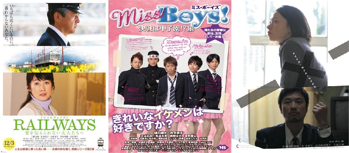 Ensuite, deux sortie plus intimistes. Le premier, Miss Boys! Kessen wa Koshien!? Hen première partie de ce film, dont la suite sortira en janvier, met en scène Kamakari Kenta et Suzuki Shogo (du groupe Cocoa Otoko) en tenue de jeunes demoiselles au milieu du lycée. Sakamoto, l’as de l’équipe de basket manque cruellement de modestie et afin de corriger ce défaut, l’entraineur l’oblige à applaudir l’équipe durant deux semaines. Mais chez les majorettes, pas de garçons…