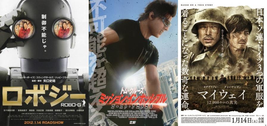 Cela faisait quatre semaines que Tom Cruise et sa bande squattaient la tête du box-office, avec une recette de 45 millions d’euros. Alors qu’en Corée du Sud, une autre production américaine avait pris la tête du box-office, dans les salles nippones, c’est Robo-G, de Yaguchi Shinobu, qui a pris le dessus avec ses 250 000 spectateurs dans la capitale. En troisième place figure My Way avec seulement 100 000 billets vendus malgré un nombre d’écrans supérieur à Robo-G.
