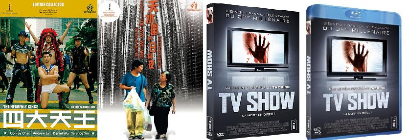 Spectrum Films est un petit éditeur discret spécialisé dans les films asiatiques à petit budget. Ainsi quelques perles comme Failan, The Passenger ou encore Parking ont débarqué en France grâce à eux et cette année, voici leur deux nouveaux choix : The Heavenly Kings et The Way we are. Le premier est hongkongais et décortique l’industrie de la musique et des majors. Premier film de Daniel Wu, où lui et trois amis comédiens de série B, décident de monter un boy’s band « Alive » sauf… qu’ils ne savent pas chanter ni danser… Vrai faux documentaire, cette édition ravira les plus cinéphiles car vous retrouverez un commentaire audio, un court-métrage, une interview de Daniel Wu mais aussi le reportage Alive is not Dead ! En face, le film chinois d’Ann Hui (Boat People) où deux dames âgées et voisines vont petit à petit partager leur solitude, The Way we are. Là aussi, vous retrouverez une interview de la réalisatrice. Prix conseillé pour chaque titre : 16€.
