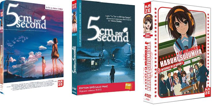 Kazé ressort 5 centimètres par secondes, mais cette fois-ci en Blu-ray. Pas plus d’informations sur le contenu mais sachez que l’édition collector spécial FNAC qui sortira le 21 mars, sera une édition 2DVD avec en plus, le court-métrage She and her Cat, deux entretiens avec le réalisateur, un entretien avec les comédiens ainsi qu’un album photo du tournage. Le tout pour 13€ seulement. Et on termine par l’intégrale de la saison 2 de La mélancholie de Haruhi Suzumiya. SOS Brigade revient sur 26 épisodes tous plus loufoques les uns que les autres et le tout pour 50€ !