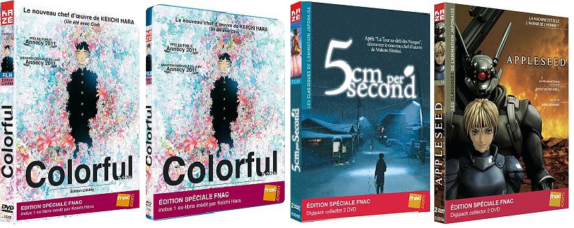 Car il y a aussi les éditions collector Spécial Fnac (pour le DVD et le Blu-Ray), au même prix, qui contient en plus un ex-libris inédit par Hara Keiichi (dans la limite des stocks). A noter aussi, l’apparition de la collection : Les classiques de l’animation japonaise avec 2 titres en double DVD collector 5cm per Second et Appleseed.