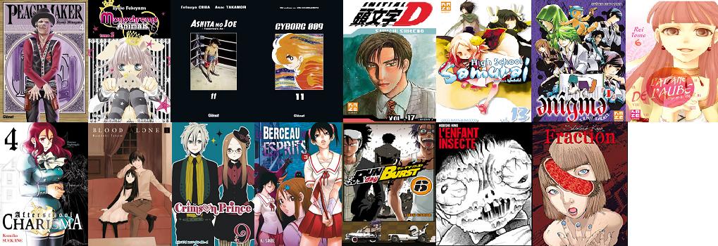Aux éditions Glénat : Peacemaker : Tome 4, Monochrome Animals : Tome 2, Ashita no Joe : Tome 11 et Cyborg 009 : Tome 11