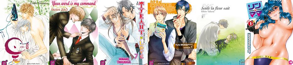 Aux éditions Taifu Comics : Ze : Tome 8, Your word is my command : One Shot, The Tyrant Who Fall in Love : Tome 7, Private Teacher : Tome 1, Seule la fleur sait : Tome 1 et Catch X Mama : Tome 1