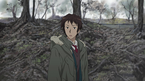Avant même de s’intéresser au contenu du film, il est intéressant de se pencher sur sa durée. 163 minutes, c’est très long pour un film d’animation. Il y a bien ceux d’Hayao Miyazaki qui s’approchent de cette durée mais encore une fois, Kyoto Animation s’oriente vers la singularité. Celle-ci est renforcée quand Kyon commence sa recherche d’explication dans son changement de dimension. La série animée proposait un rythme dynamique, des dialogues s’enchaînant rapidement  et des musiques globalement récréatives (surtout les openings/endings). Ici, nous avons droit à un rythme beaucoup plus posé et lent, la bande sonore est relativement discrète et oppressante. Remarquons d’ailleurs un travail très soigné sur la musique classique, qu’on peut voir également dans le DVD bonus. Grâce à ce travail, on ressent réellement les émotions du héros, la cassure entre les instants où Haruhi étaient présentes et ceux où Kyon est seul, perdu, abandonné. La colère intérieure n’est plus retenue et pour une fois, il doit prendre ses propres initiatives, les entreprenant maladroitement. Par moment, le long métrage navigue presque dans un cadre auteuriste prenant une nouvelle fois à contrepied le spectateur qui ne pensait pas voir un film aussi contemplatif.