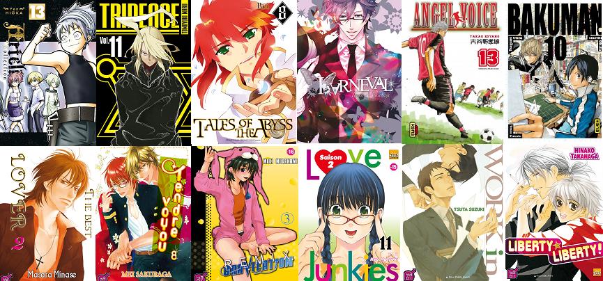 Aux éditions Ki-oon : Artelier Collection : Tome 13, Tripeace : Tome 11, Tales of Abyss : Tome 8 et Karneval : Tome 5