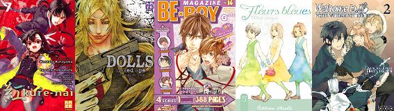 Aux éditions Kazé : Kure-nai : Tome 7, Dolls : tome 6, BeXboy Magazine : tome 14 et Fleurs Bleues : Tome 5