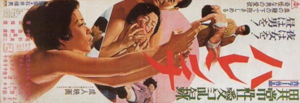 Teruo Ishii (1924-2005), surnommé « The King of Cult » au Japon, est reconnu en Occident pour la série Super Giant ainsi que son long métrage Abashiri Prison (1965), permettant l’éclosion de l’acteur Ken Takakura (Le détroit de la faim, Trop tard pour les héros, Golgo 13). Après la faillite des studios Shintoho, il se tourne vers la Toei avec lequel il tourna la majorité de ses films, incluant les séries Hot Springs Geisha et Joys of Torture (1968-1973), très appréciées du public. Au milieu de ces deux succès, Ishii réalisa en 1969 Ijo Seai Kiroku Harenchi (L’amour abusif, déviant et dévergondé). Avec Teruo Yoshida, Asao Koike et Kiyoko Tange, l’histoire met en exergue les tribulations d’une femme soumise, Noriko, battue par son amant, Yukihata, gros obsédé sexuel, qui ne recule devant rien pour abuser d’elle dans toutes situations. Noriko, n’en pouvant plus, semble retrouver un brin d’espoir avec un deuxième amant, Yoshida.