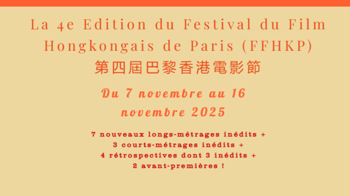 Le Festival du Film Hongkongais de Paris (FFHKP), organisé par l’association CUBE, revient du 7 au 16 novembre 2025 pour une 4ème édition ! Cette année, le rendez-vous incontournable du cinéma cantonais s’étend à deux espaces de projection : le Saint-André des Arts (6ème arrondissement) et le Club de l’Étoile (17ème arrondissement). De quoi satisfaire géographiquement une plus large partie de la cinéphilie parisienne. Sans plus attendre, regardons la belle programmation !