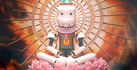 Junk World ne cherche pas à dialoguer sur un thème en particulier. Bien que, grâce à la galaxie de nouveaux personnages, le film soit plus parlé que son prédécesseur, il n’en est pas pour autant devenu verbeux ou bavard. Toujours dans sa langue inventée, faute de moyens pour se payer des doubleurs, la narration reste essentiellement visuelle, s’appuyant sur des décors improbables et un comique de situation qui éclaire le chaos ambiant. Dans ce film effréné, toujours en mouvement, les événements s’enchaînent et se répètent en boucles temporelles, autant d’occasions supplémentaires d’explorer l’univers Junk Head. Une séquence incroyable voit même notre robot donner naissance, presque par accident, à un véritable culte. On ne vous en dit pas plus : tout le plaisir se trouve dans le sentiment de découvertes fascinantes en continu qu’est ce voyage dans la tête de Hori Takehide.