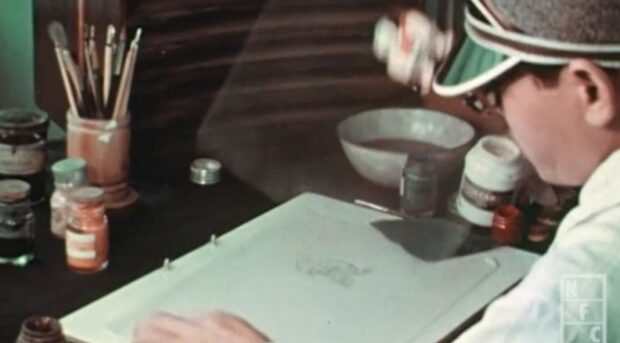Making-of du film d’animation Katsura-hime d’Ofuji Noburo, ce documentaire explique précisément et plaisamment comme réaliser un dessin animé, à l’aide de celluloïds et de beaucoup d’effets colorés, tout en apercevant une bonne partie du cartoon ainsi créé. On pense lointainement à Rabbit Rampage, un cartoon de Chuck Jones de 1955 montrant Bugs Bunny malmené par son dessinateur et faisant ainsi imaginer au public peu averti ce qui se trame sur la table à dessin avant d’assister au dessin animé terminé !