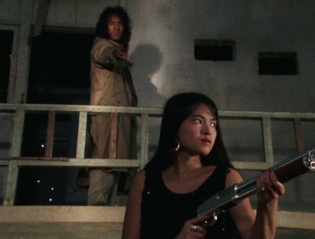 Tourné en bonne partie à Okinawa, pour justifier la présence des armes à feu, le film tire parti de décors réels, des néons des quartiers chauds la nuit aux bases militaires américaines désaffectées. Si la narration est volontairement accélérée (les séquences d’enquêtes sont littéralement un montage de Joker « interrogeant » des malfrats dans des rues mal famées), et apporte une grande attention à ses effets et à ses armes (la question est débattue, mais il s’agit peut-être du premier film japonais à prendre en compte les douilles des pistolets, même si Kitano affirme ne pas s’en être inspiré). Côté spectacle, le film tient ses promesses, avec des effets convainquants de balles tirées dans des fronts ou à travers des lunettes, des explosions, des voitures qui se retournent, une danse du lion dans laquelle la bouche du costume laisse soudain paraître des pistolets… Les costumes et les véhicules sont choisis avec soin pour donner une impression de cohérence et compenser l’extrême fluidité du déroulement. Pour un premier film (Okawa Toshimichi était jusque là un scénariste), dans un nouveau mode de production conçu pour un nouveau marché, le film est véritablement méritoire. On est clairement dans l’exploitation (avec une scène de sexe aussi gratuite qu’étrange puisque personne dans l’équipe du film ne sait expliquer pourquoi l’homme est maquillé comme un ersatz de Ziggy Stardust, des bandanas, un plan final mi piéta mi Rambo, une scène de danse un peu maladroite de l’héroïne, un léger érotisme des épaules dénudées…), mais il y a une vraie volonté de faire autant que possible avec les moyens donnés. La musique est très datée mais mémorable, la photographie 16mm donne un grain qui convient parfaitement à l’esthétique choisie. Dans l’ensemble, si le film n’est pas un grand film, il est extrêmement sympathique et conscient de ses limites, tentant de les transcender par sa profonde générosité.