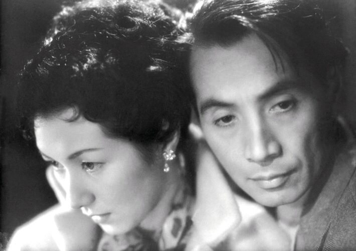 L’une des forces du récit est la sobriété propre à la mise en scène de Naruse, qui permet au jeu de Takamine Hideko (l’une des premières idols du pays, personnalité solaire réinventée par Naruse en tragédienne) et Mori Masayuki, aussi insaisissable ici que dans Rashomon (même si le film joue avec l’idée qu’il serait plutôt une incarnation moderne d’Iemon, ayant quitté Yotsuya pour Tokyo). Plutôt que des scènes de crises, le metteur en scène leur propose des scènes de dialogues moroses, ou chaque parole d’incompréhension agit comme un poignard. Le film joue sur le romanesque déçu ; le double suicide est avorté avant même d’être né, le meurtre est révélé par le journal, le vol est hors champ, tout est gâchis et intersection de solitudes. Et la musique nous emmène parfois vers des ailleurs possibles, que ce soit l’Internationale lors d’une manifestation avant que les personnages ne soient rappelés à leur misère, « Ce n’est qu’un au revoir » ou le thème nostalgique qui rappelle le Vietnam et l’illusion de l’amour perdu. Par moments, quand la douleur est trop forte, une analepse survient, une dernière fois lorsque l’héroïne s’éteint, alors que le geste final de l’amant montre qu’enfin il la regarde après un film entier à la fuir, mais trop tard, lorsqu’il n’y a plus rien à espérer. À tous égards, le film est un modèle du genre, parfaitement maîtrisé et implacable dans sa tragédie. Étrangement, on peut penser au Verlaine des Fêtes Galantes devant ce film, où « deux formes ont tout à l’heure passé », évoquant le souvenir défunt de leurs extases anciennes et le double suicide resté invitation contrariée : comme les indolents, nos mélancoliques se reprochent parfois d’avoir eu l’inexpiable tort d’ajourner une exquise mort…